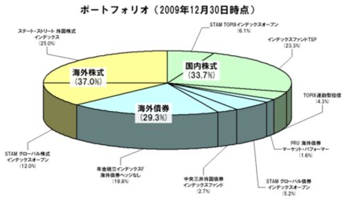 前回のまとめから1年経って、ポートフォリオがどう変化したのかを振り返る。年末に投資状況をチェックすることで、投資のリバランスを行うことを目的としている。 2009年の投資 2009年末のポートフォリオは下記のようになっていた。 2010年は外国株式の投資…